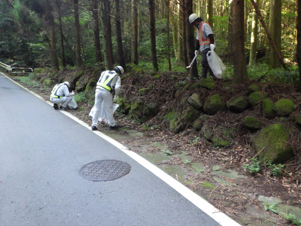 当日は、17人が参加し礫石原町付近の県道愛野島原線と島原総合運動公園の指導小山新山線の道路清掃・ごみ拾いを行いました。